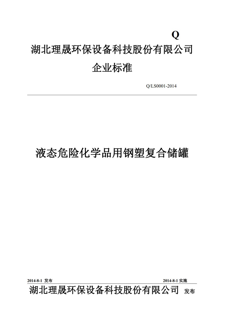 液態(tài)危險(xiǎn)化學(xué)品用鋼塑復(fù)合儲(chǔ)罐企業(yè)標(biāo)準(zhǔn)點(diǎn)擊查看:鋼襯塑儲(chǔ)罐企業(yè)標(biāo)準(zhǔn)